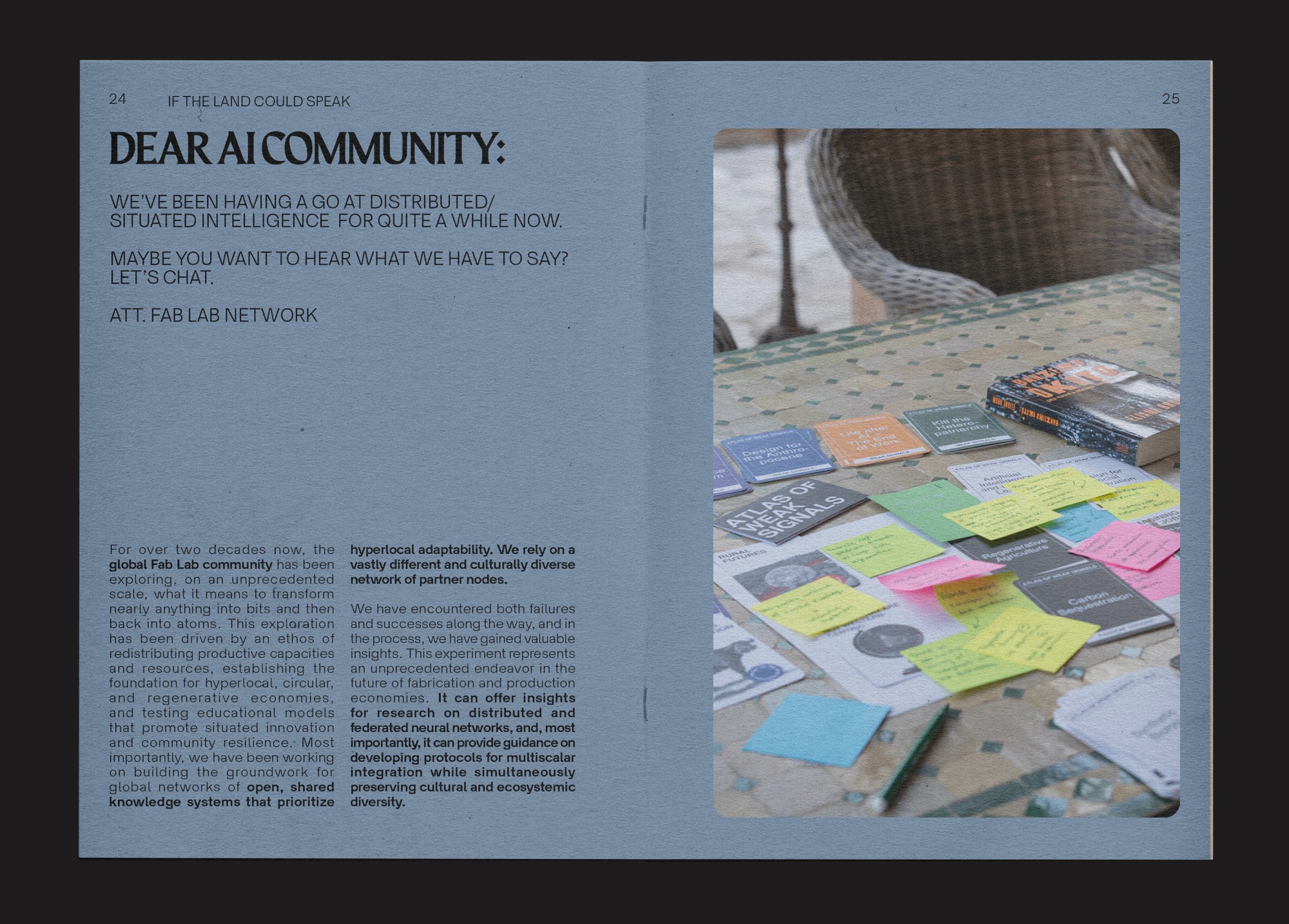 My role in this project was to document and visually narrate the experience through photography and the design of a fanzine—a memoir that encapsulated the spirit of the workshop. The fanzine served as a creative medium to reflect on the collaborative process, capturing the ideas, discussions, and emotional atmosphere of the week. By integrating both images and design elements, I aimed to convey not only the intellectual rigor but also the sense of community and shared purpose that defined this workshop. It became a visual representation of the journey, blending traditional craft with cutting-edge AI research, and serves as a tangible record of the innovative steps we took towards understanding AI’s role in shaping sustainable futures.