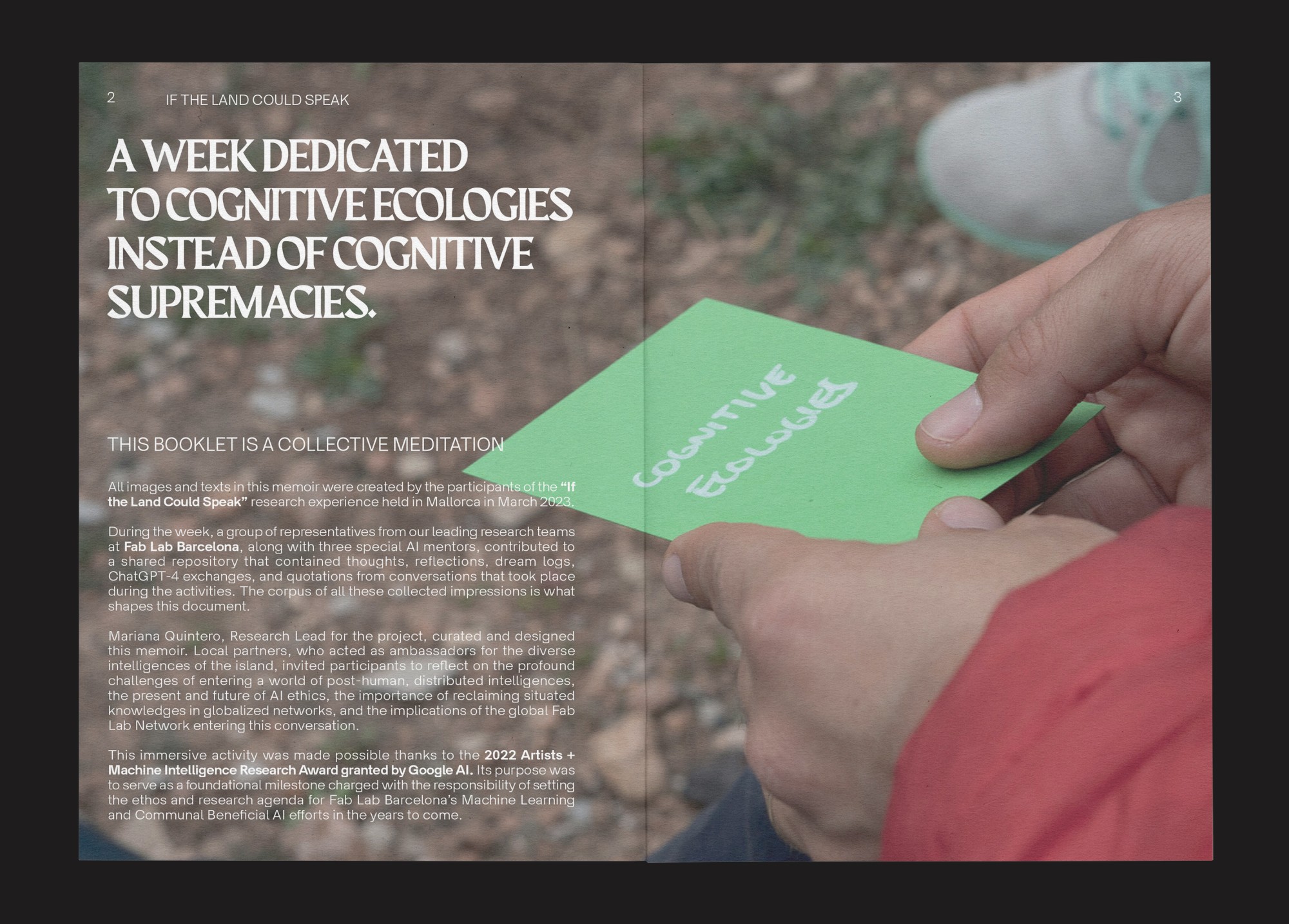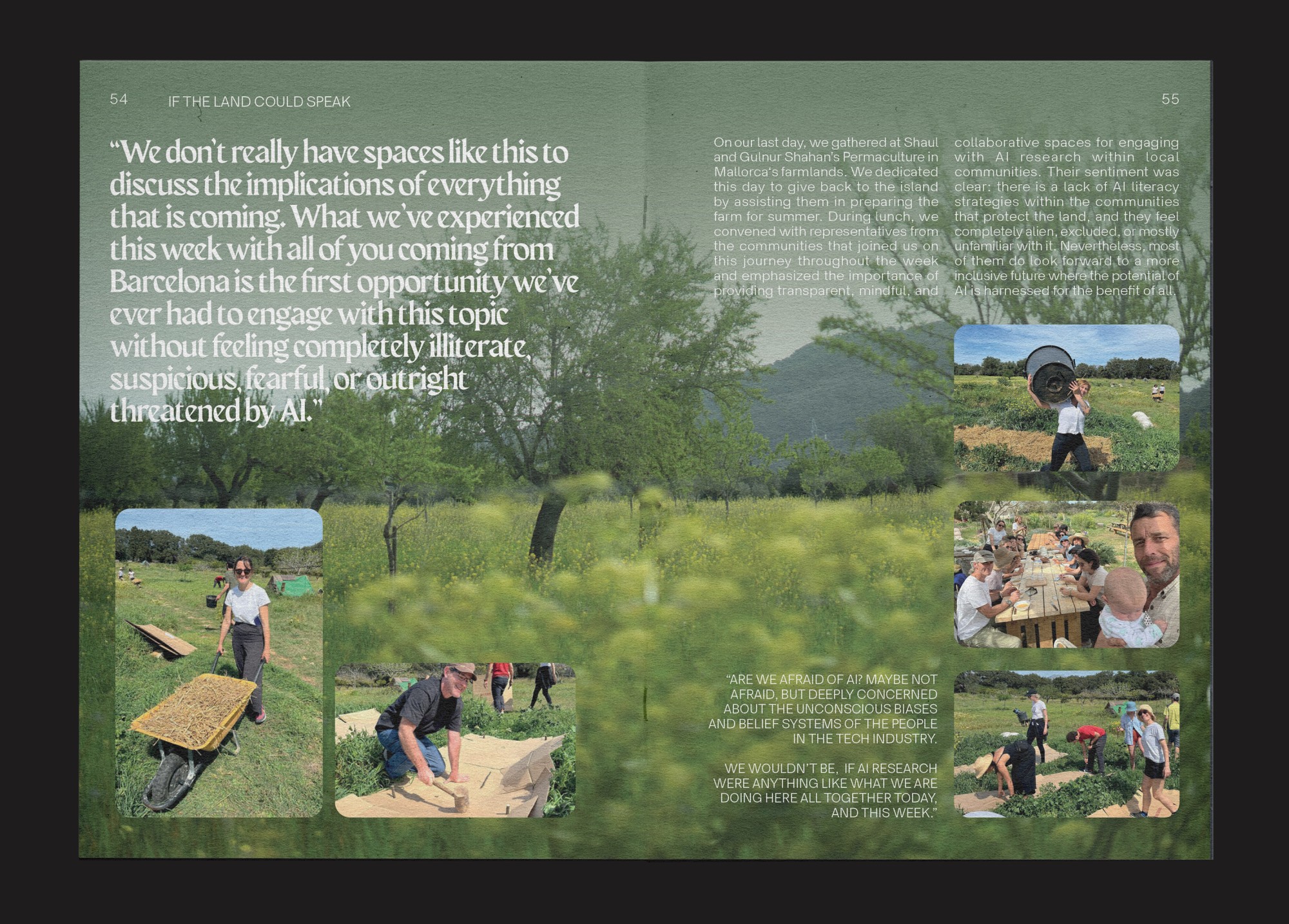 Being part of “If the Land Could Speak,” a workshop led by Mariana Quintero, was a deeply enriching experience. This initiative, organized by Fab Lab Barcelona, aimed to explore the intersection of art, design, and artificial intelligence, focusing on how these fields could contribute to regenerative practices and communal beneficial AI. Held in Mallorca, the workshop brought together a diverse group of collaborators, each offering unique perspectives on AI’s potential to foster both innovation and sustainability.